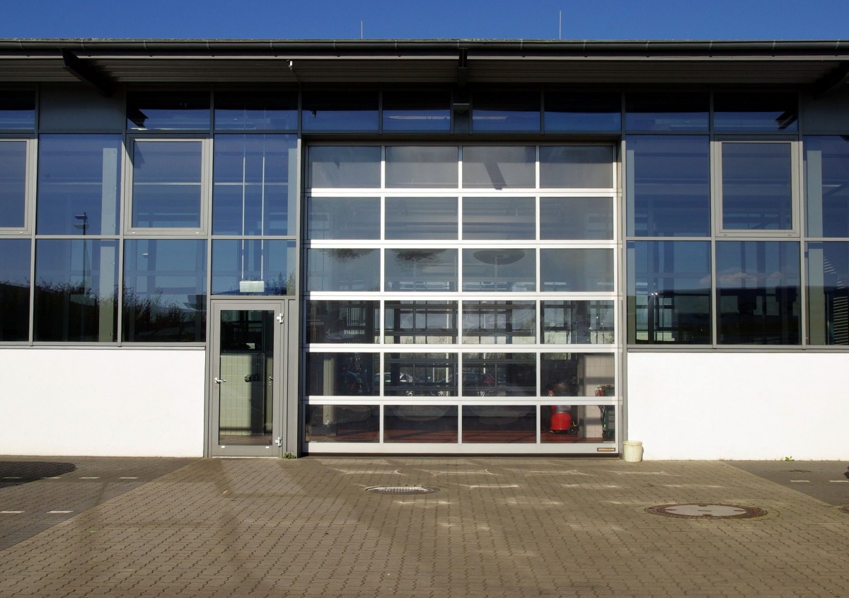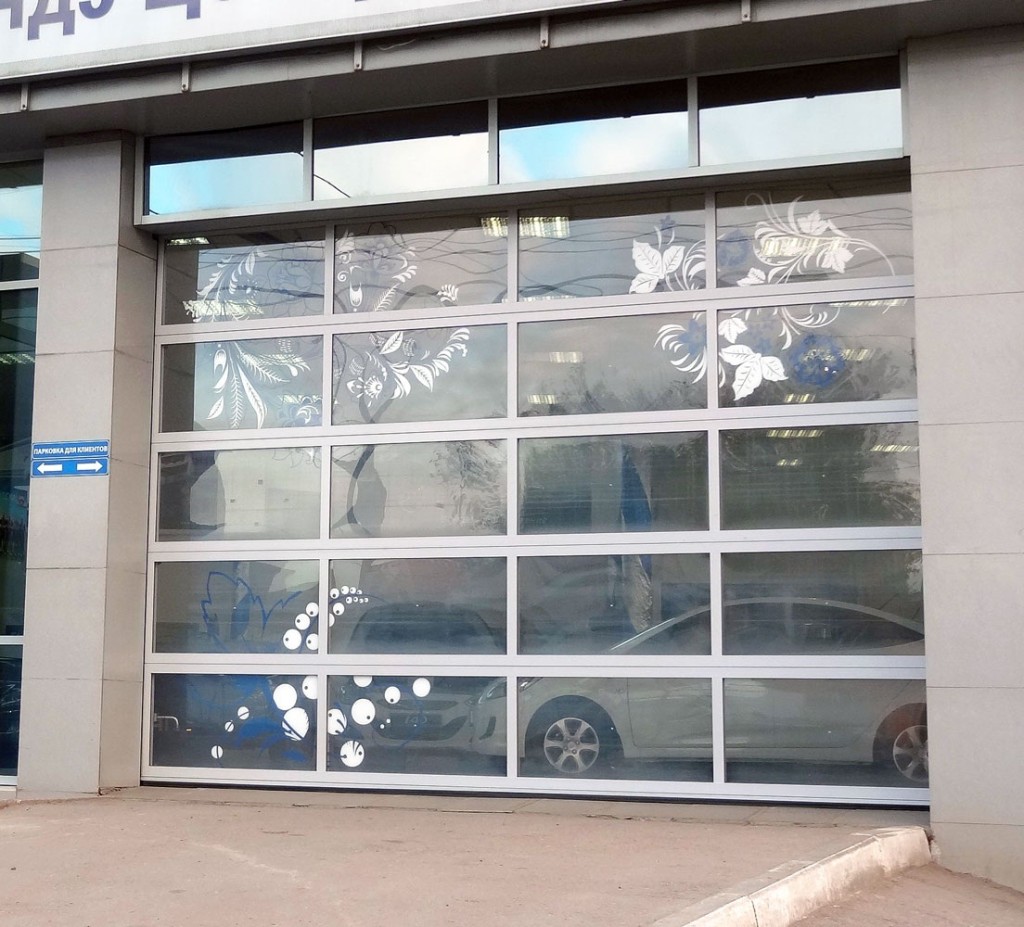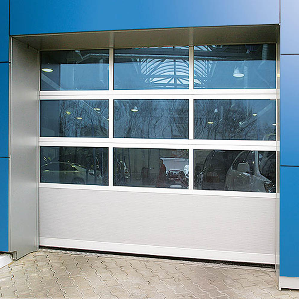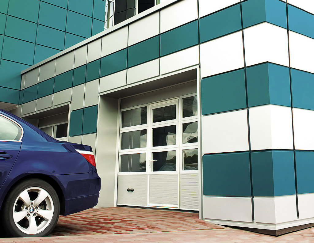 Панорамные секционные ворота устанавливаются в проемы зданий с остекленными фасадами, а так же там, где требуется обеспечить максимальный обзор внутреннего пространства, например, в автосалонах. Панорамные ворота изготавливаются из панорамных панелей, которые собираются из алюминиевых профилей в рамную конструкцию с установленными внутрь стеклопакетами. В качестве остекления панорамных ворот используются устойчивые к механическим воздействиям материалы – поликарбонат, ударопрочный поликарбонат и сотовое оргстекло, которые имеют специальное покрытие, исключающее образование конденсата на панели. Панорамные панели выпускаются в соответствии с нормативно-технической документацией и проходят обязательный контроль.