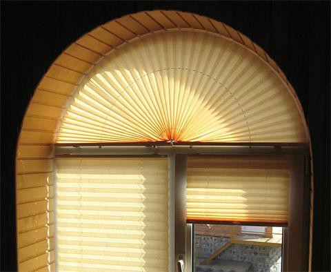 Шторы плиссе имеют широкий ассортимент систем плиссе , который может с легкостью закрыть сложные окна , и при этом продуманно так, чтоб плиссе имело рабочую часть, т.е. шторы плиссе открываются и закрываются , несмотря на сложные формы, что очень оптимально для зимних садов и окон нестандартной формы.