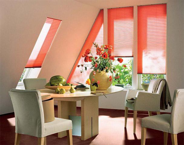 Элегантные, практичные и функциональные, такие шторы великолепно дополняют интерьер, создают уютную атмосферу и позволяют добиться максимального комфорта в плане освещения. Использование систем штор-плиссе является идеальным решением для декорирования оконных проемов сложной конфигурации, поскольку традиционные портьеры для таких окон не подходят.
